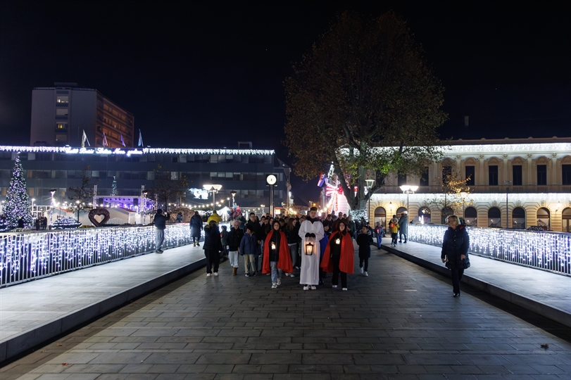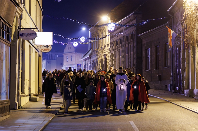 U Vukovaru svečano upaljena prva adventska svijeća – početak 28. Vukovarskih adventskih svečanosti.U nedjelju, 30. studenog 2025., svečanim paljenjem prve adventske svijeće započele su 28. Vukovarske adventske svečanosti, koje ove godine nose naziv „Vukovar – grad obitelji i tradicije“. Program je i ove godine organiziran u suradnji Gradskog muzeja Vukovar, Hrvatskog doma Vukovar i Franjevačkog samostana Vukovar, uz potporu Grada Vukovara, Vukovarsko-srijemske županije, Ministarstva kulture i medija RH, te Turističke zajednice grada Vukovara.Svečanost je započela u crkvi sv. Filipa i Jakova, gdje su učenici Osnovne škole Dragutina Tadijanovića izveli recital Put Svjetla, uz sudjelovanje Župnog zbora sv. Cecilije. Nakon programa, djeca, mladi i brojni sugrađani uputili su se u tradicionalnu Svjetlosnu rijeku, noseći svijeće od crkve prema dvorcu Eltz i Gradskom muzeju Vukovar, simbolično prenoseći svjetlo nade, zajedništva i obitelji.U dvorištu Gradskog muzeja uslijedio je svečani program otvorenja. Nakon uvodnog obraćanja organizatora i pjesme „Visom leteć ptice male“ u izvedbi HKUD-a Osijek 1862, prvu adventsku svijeću – svijeću nade – upalio je gradonačelnik Grada Vukovara, Marijan Pavliček. Prije paljenja, gvardijan Franjevačkog samostana Vukovar, fra Toni Vučemilović, blagoslovio je adventski vijenac.Središnji dio večeri obogatilo je Kulturno-umjetničko društvo Kolo iz Vukovara, čiji su najmlađi članovi izveli scensku tradicijsku prikaznu točku „Rođenje Isusa u Betlehemu“. Potom su im se pridružili i odrasli članovi Društva, naglašavajući važnost prenošenja običaja i pjesama s generacije na generaciju. Izveli su zajedničke božićne pjesme Narodi nam se i Zdravo budi.Posebni gosti ovogodišnjeg otvaranja bili su prijatelji iz HKUD-a Osijek 1862, jedno od najstarijih kulturno-umjetničkih društava u Hrvatskoj. Izveli su dvije baranjske pjesme – Nov glas nosim i Srićna noć, te božićnu pjesmu Svim na zemlji mir veselje. U duhu zajedništva, KUD Kolo i HKUD Osijek 1862 zajedno su izveli pjesmu „Radujte se, narodi“, što je izazvalo posebno oduševljenje okupljenih.Svečanost je zaključena zahvalama svim sudionicima, partnerima i posjetiteljima, uz poziv na nastavak druženja uz adventski vijenac i tradicionalne torte koje su i ove godine u suradnji darovali Grad Vukovar, Vukovarsko-srijemska županija i Ministarstvo kulture i medija RH.28. Vukovarske adventske svečanosti nastavit će se tijekom četiri tjedna došašća prigodnim kulturnim, glazbenim i tradicijskim programima za sve generacije.Foto: Miroslav Šlafhauzer