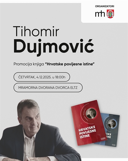 Dragi prijatelji, Pozivamo Vas na promociju knjige Tihomira Dujmovića "Hrvatske povijesne istine" u četvrtak 4. prosinca u 18h u Mramornoj dvorani dvorca Eltz. Vaš GMV.