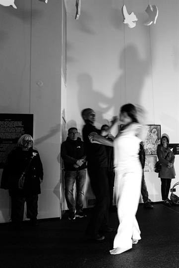 U sklopu otvorenja, publika je imala priliku doživjeti i performans "Bijeli kvadrat", u izvedbi dramaturških pedagoga Sanje Lađarević i Milana Medaka iz Rovinja. Scenografiju i odabir glazbe za performans osmislio je sam autor izložbe, Branko Gulin, čime je dodatno zaokružena emotivna i simbolična snaga ovog multimedijalnog umjetničkog događaja.