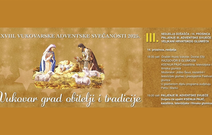Već dvadeset i osmu godinu zaredom Gradski muzej Vukovar u suradnji s Hrvatskim domom Vukovar i Franjevačkim samostanom Vukovar, uz stalnu potporu grada Vukovara, Vukovarsko – srijemske županije, Ministarstva kulture i medija RH i Turističke zajednice grada Vukovara organizira vukovarske adventske svečanosti koje nas priredbama u duhu tradicijske kulture kroz četiri tjedna adventa uvode u Božić, blagdan svjetla, mira i ljubavi!